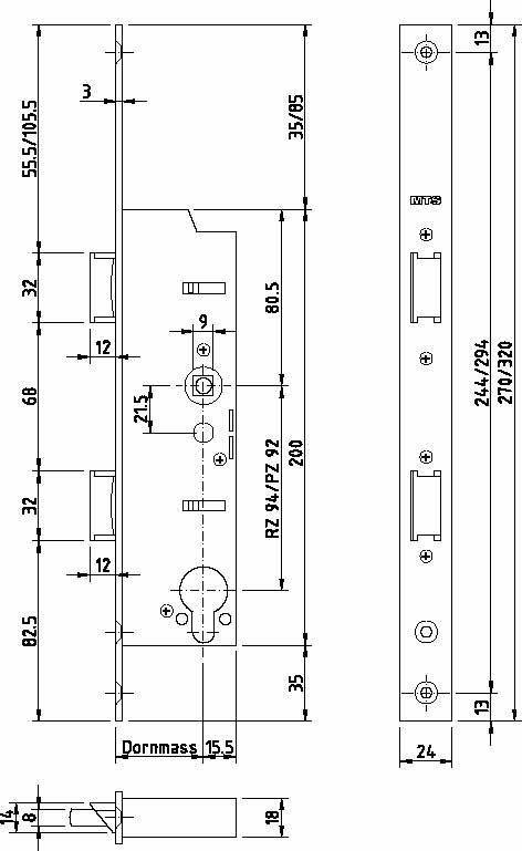 - Zweifallenschloss-Panikschloss mit der Panikseite auf Seite Treppenhaus – dadurch ist der Zutritt immer möglich