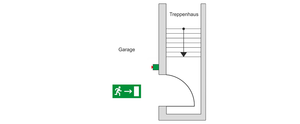 - Fluchttüröffner auf der unteren Falle, Freigabe über Nottaster an der Wand – Türe lässt sich in einer Paniksituation von der Garagenseite öffnen, der Zutritt für berechtigte Personen mit dem Schlüssel ist immer möglich